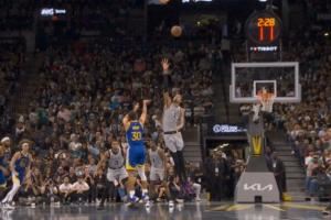 > 想起一些不好的回忆……库里迎着文班撤步三分 文班颇有些无奈啊!